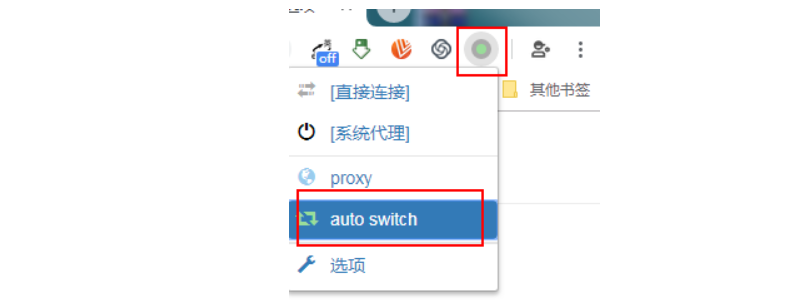 点击chrome右上角switchyomega图标,选择auto switch模式即可。